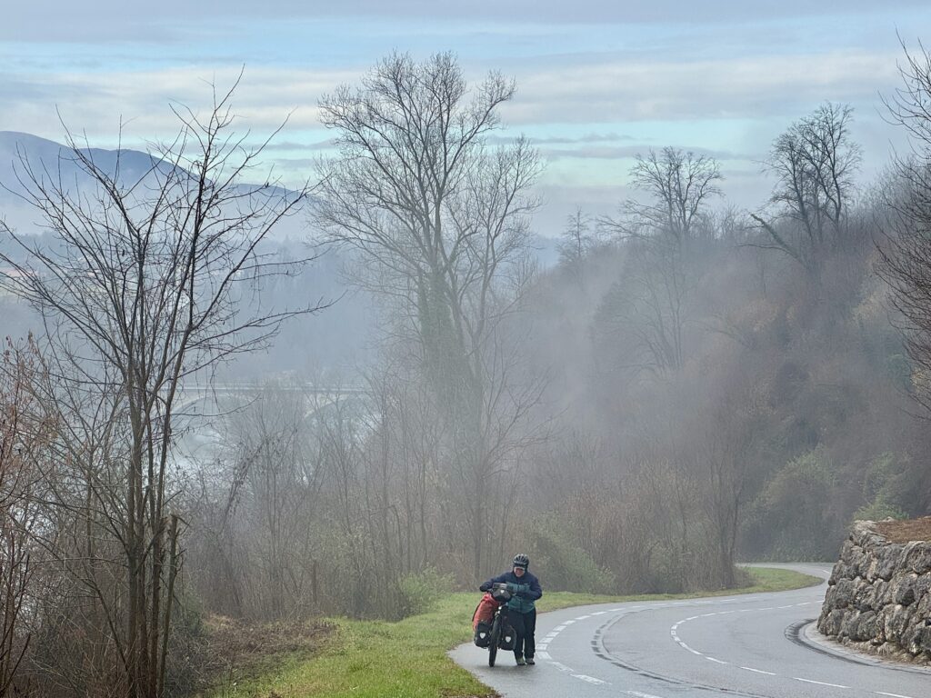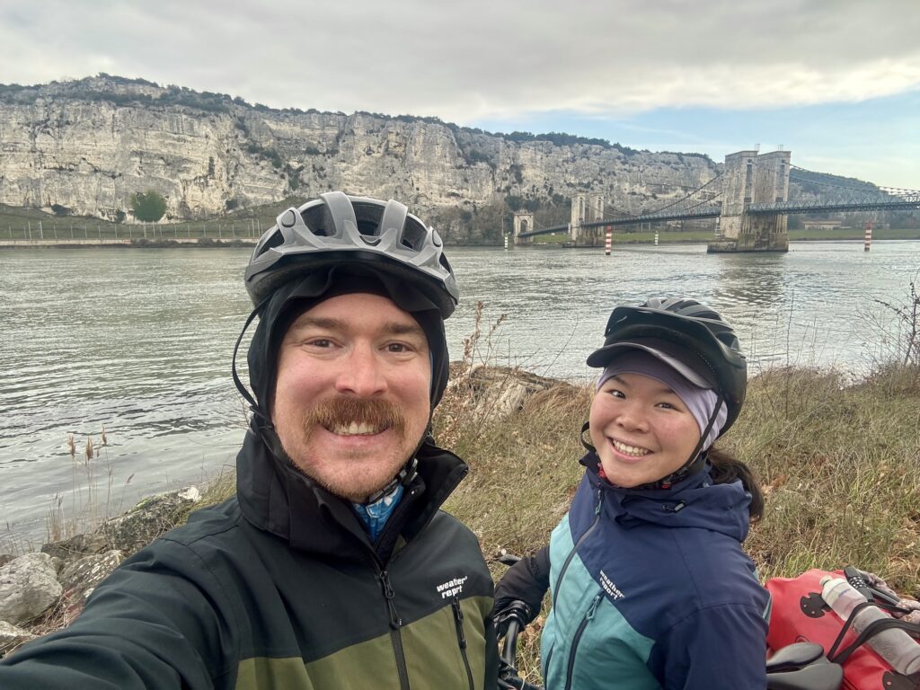Durch Frankreich fuhren wir Richtung Schweiz. Wir versuchten dabei, Regen, Schnee und Höhenmeter zu vermeiden, um möglichst sanft durch den Winter zu kommen. Zuerst entlang der Rhone, danach der Isère, sahen wir die schneebedeckten Alpen – und somit auch die Schweiz – immer näher kommen!