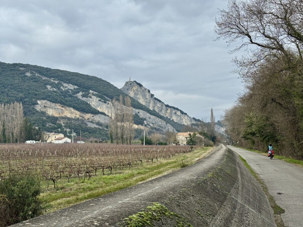 Wir fuhren von dort aus Richtung Norden, wo wir zuerst die Stadt Orange erreichten, bevor wir im Ort Mondragon einen weiteren Halt machten. Wir genossen die exzellente Radinfrastruktur, die ist in Frankreich wirklich vorbildlich! So war das Durchqueren von grösseren Städten auch recht einfach, auch wenn wir sie natürlich wenn möglich trotzdem umfuhren.