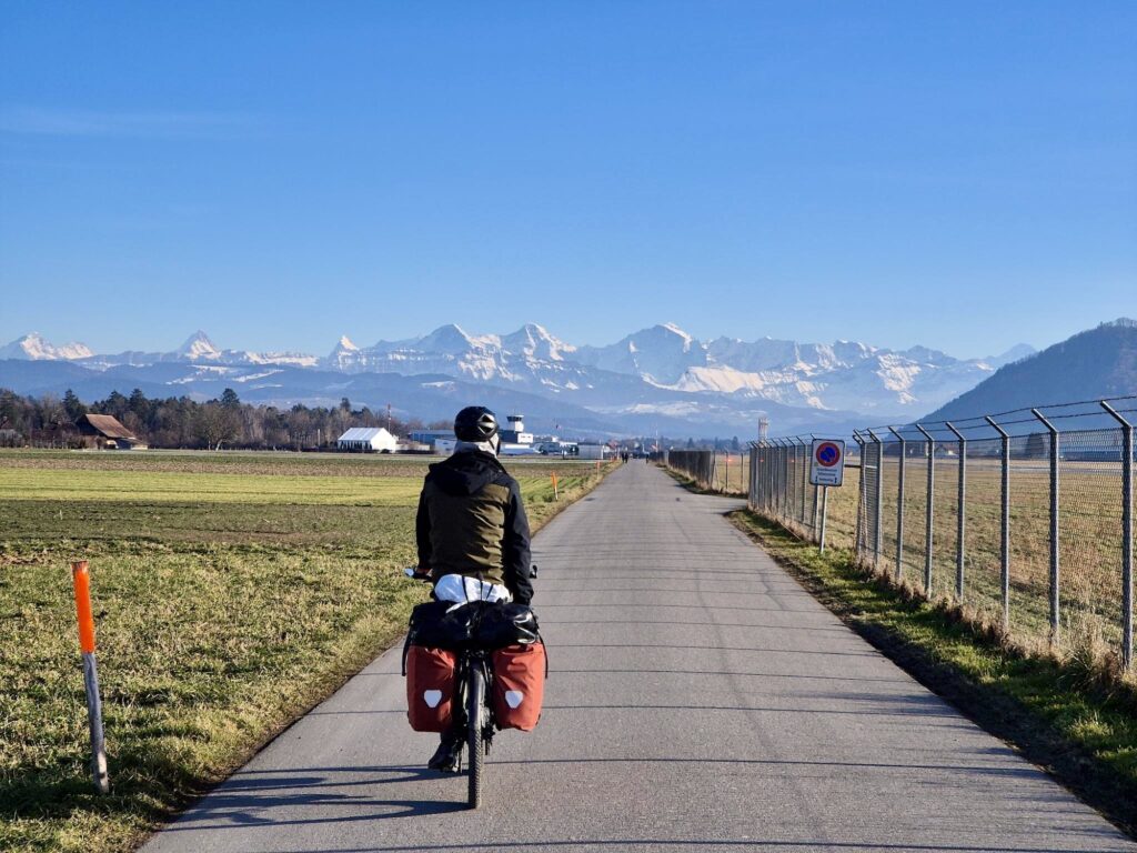 Nach einer kurzen Pause und Stärkung fuhren wir durch Bern nach Wabern. Dort kamen wir ganz in die Nähe, wo wir früher wohnten. So ein spezielles Gefühl, plötzlich auf meiner alten Joggingrunde zu sein! Wir entschieden uns, durch das Aaretal zu fahren, und so fuhren wir zuerst zum Flughafen Bern/Belp, wo wir wieder die Aare erreichten.