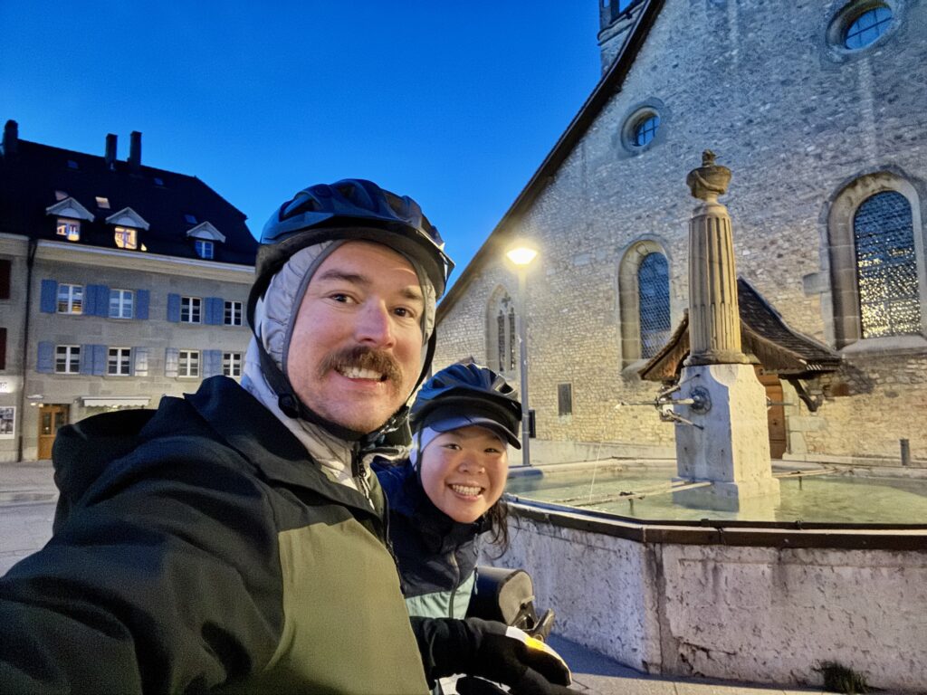 Susan und ihre Tochter lauschten gespannt unseren Geschichten, während wir die warme Stube, Suppe und einen Tee genossen. Was für ein Willkommen in der Schweiz! So verbrachten wir den ganzen Nachmittag dort, bevor wir weiterradelten. Wir kamen nach Einbruch der Dunkelheit auf dem Campingplatz in Lausanne an. Zu unserer Freude hatte dieser schon offen!