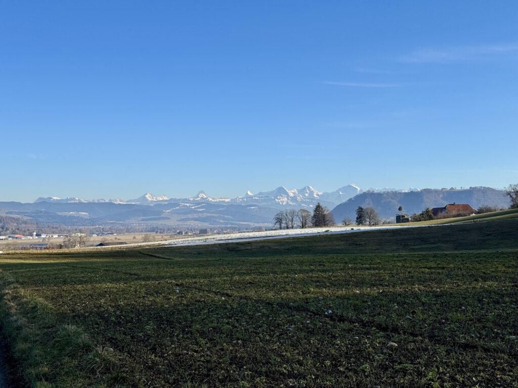 Vor der Abfahrt nach Belp sahen wir das erste Mal das Alpenpanorama mit Eiger, Mönch und Jungfrau bei absolut traumhaftem Wetter. Ein sehr emotionaler Moment!