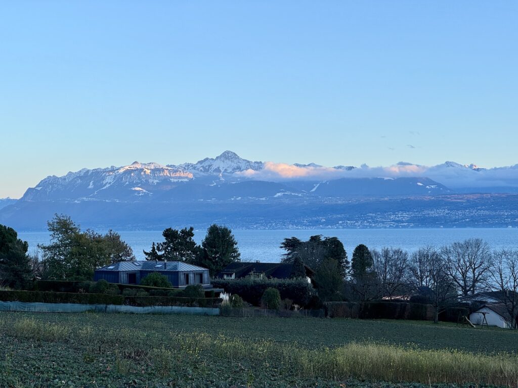 In einer Bushaltestelle assen wir ein paar Snacks zu Mittag, denn die Restaurants schienen uns alle viel zu teuer – Ja, an die Schweizer Preise waren wir nicht mehr so gewohnt 😀 Glücklicherweise hörte nach dem Mittagessen der Regen auf und die Berge am Südufer des Genfersees kamen langsam zum Vorschein. Eine wunderschöne Region!